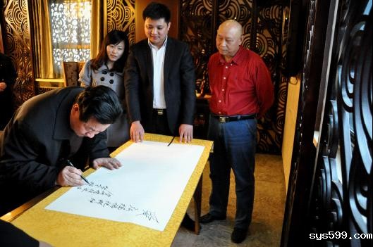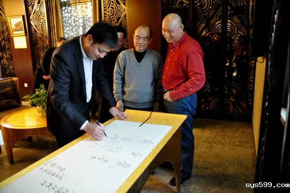 (图三) 妈祖文化(北京)活动组委会主任、妈祖阁集团董事长提笔签“爱”字