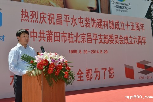 5月29日上午,总商会副会长郑国辉单位举行昌平水屯装饰建材城成立十五周年暨中共莆田市驻北京昌平区党支部成立六周年活动。总商会会长陈春玖出席活动。