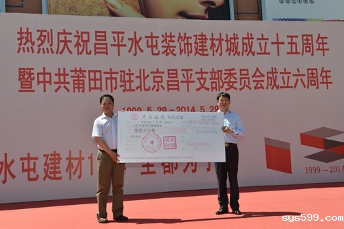 在做大做强企业的同时,郑国辉不忘回馈社会,积极投身公益慈善事业,勇于承担社会责任。活动当天,他向昌平区慈善协会现场捐款10万元。多年来,建材城已先后向社会捐资共300多万元,被昌平慈善协会评为“公益慈善单位”。